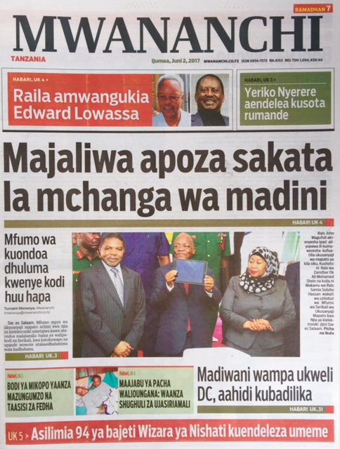 MAGAZETI YA LEO JUNI O2, 2017.